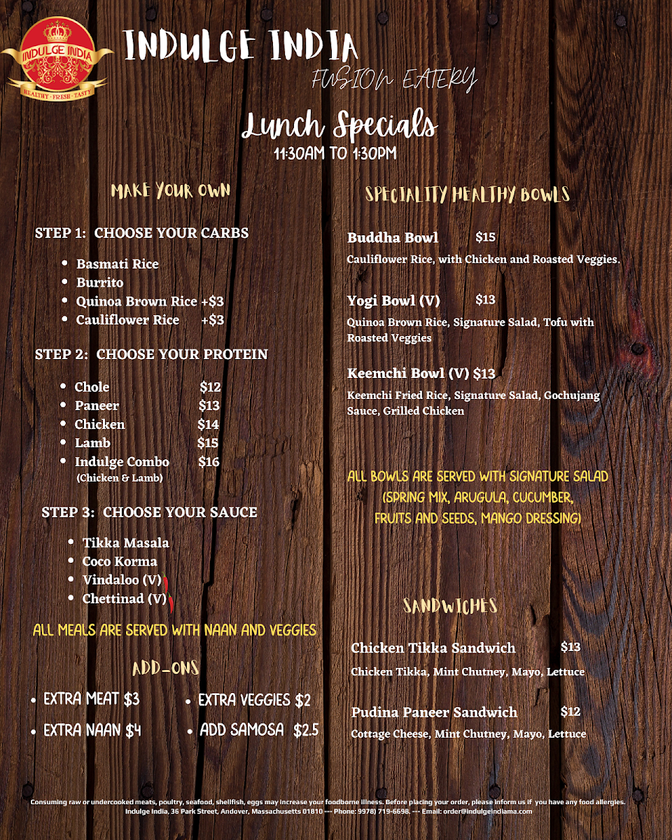 Welcome to Indulge India Fusion Eatery, a culinary gem located in Andover, MA, that celebrates the fusion of traditional Indian and contemporary flavors. This vibrant eatery is the brainchild of a talented couple with extensive experience in five-star hotels in India, now showcasing their culinary prowess in a cozy setting.